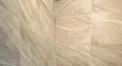 - Large tiles reduce grout lines for a seamless, spa-like look.